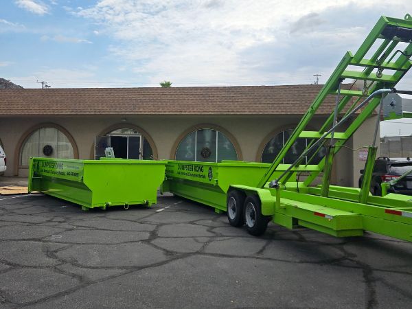 Dumpster Kong is highly Professional and experienced in providing efficient junk removal services. We offer high-class residential and commercial junk removal services to keep your construction site and business area clean and organized. Even if you're relocating, remodeling, or renovating your office space, our professional junk removal is very skilled in handling all your junk removal needs effectively and efficiently. We are professional and specialized in removing construction debris, office furniture, and equipment such as computers and other electronic removal and ensuring more space in your place. Our professional junk removal team modifies your space to meet the unique demands of business by providing flexible and reliable services. We always prioritize eco-friendly disposable methods, recycling, and donating items to minimize the environmental impacts. You can trust us; we can convert your unwanted items into functional ones. If you want to maximize your business spaces, then get in touch with us; our team handles all kinds of services, such as junk removal from office cleanout and construction debris, and we ensure a clean environment with minimum disruption. Contact us today for efficient junk removal services in Arizona and see how we can efficiently update your workplaces.